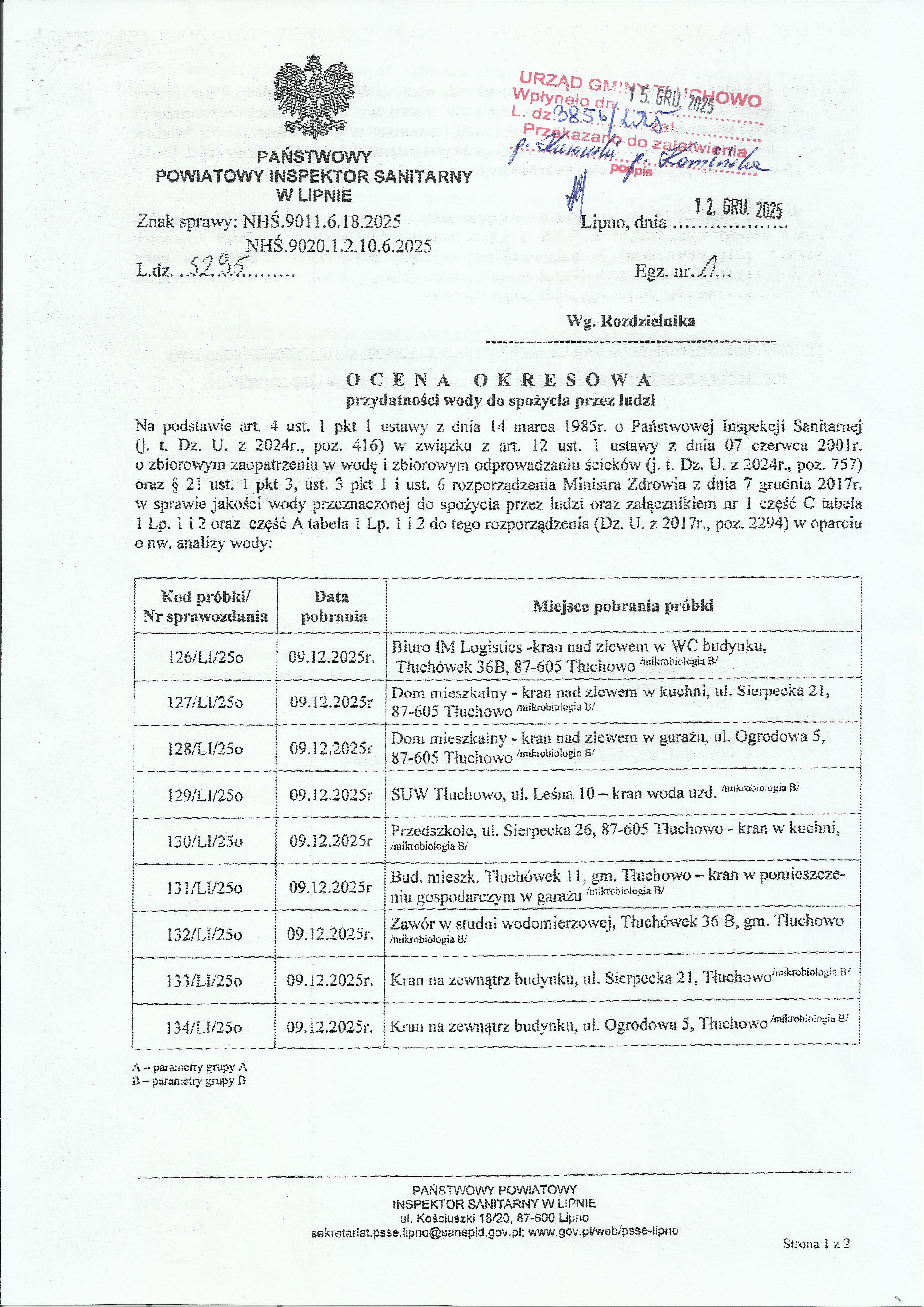 Ocena okresowa przydatności wody do spożycia